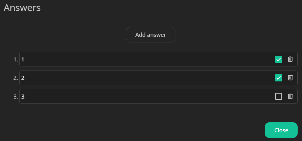 Set correct answers: Tick the corresponding checkboxes to set correct answers.