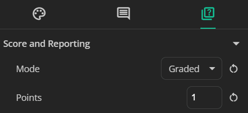 Set scores and reporting: Select the answer area > click Question from the right pane. Select the Graded mode and then set scores for the correct answers. Otherwise, select the Survey mode to collect information.