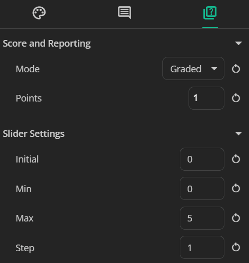 Adjust slider settings: Adjust slider properties including initial, min, max and step.