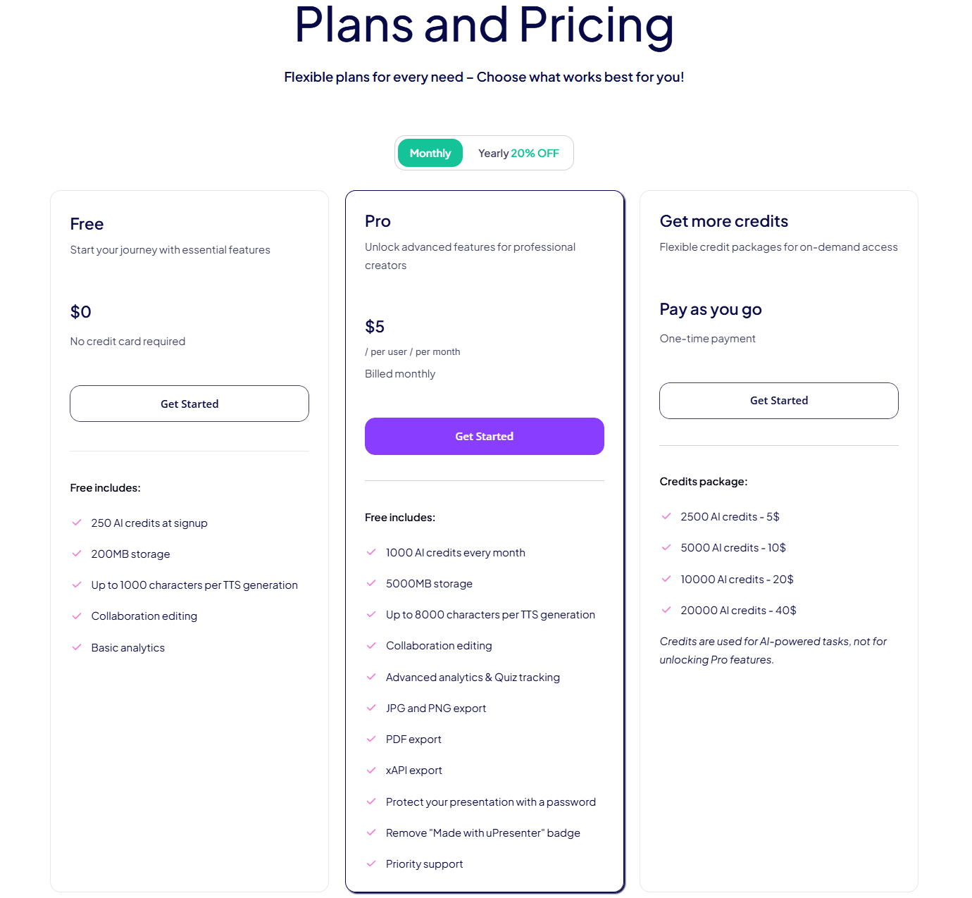 There are two main ways to earn additional credits in uPresenter: