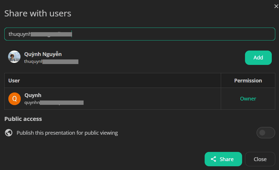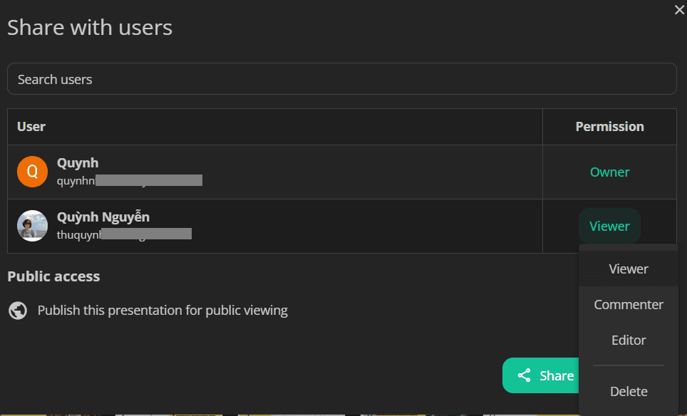 uPresenter allows you to easily share your work with team members or colleagues for live comments, feedback, and editing. This feature not only helps optimize the presentation creation process but also improves work quality and efficiency through close collaboration.